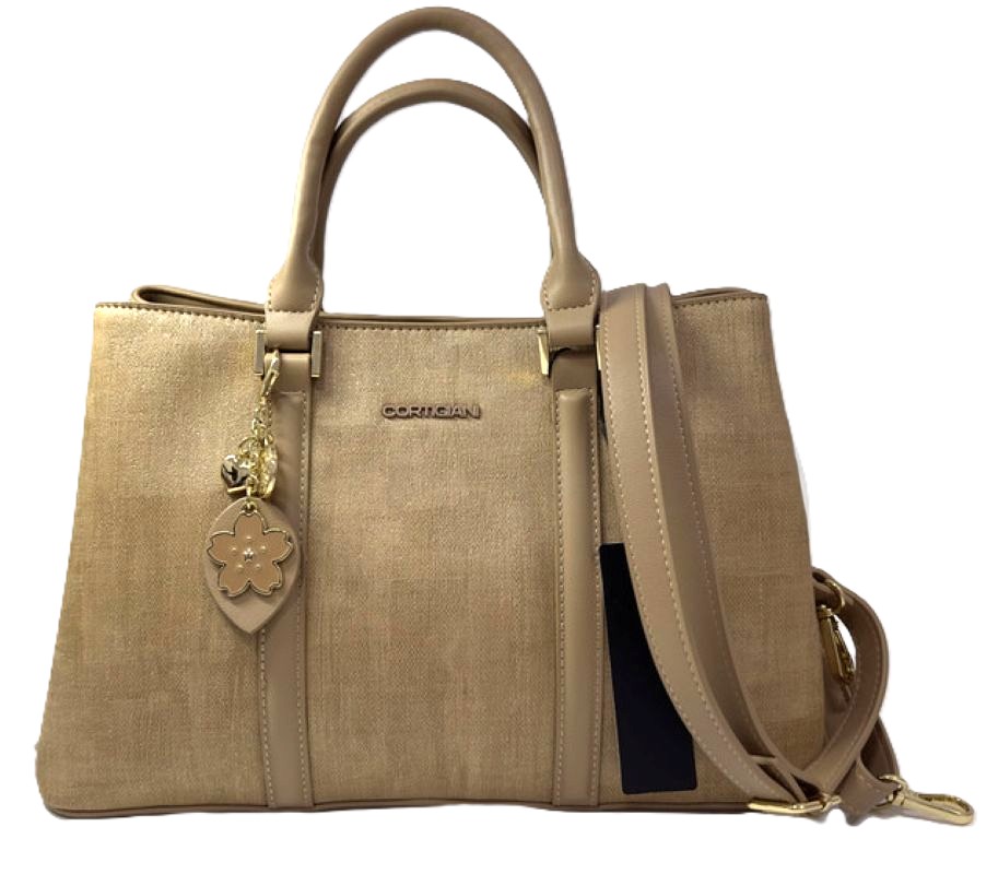 Cortigiani® Leather and Fabric Handbag with Extra strap for shoulder. Size: Medium (L 33*W 14 *H 21 cm)
